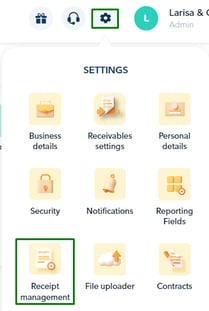- On the upper right part of the page, go to "Settings", then select "Receipt Management"