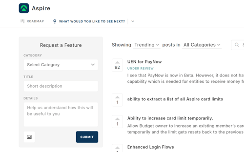 Don't have a specific feature but want to see what others are saying so you can upvote and help prioritise a feature; you can also do that here too!