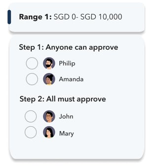 Step 1 approvals (Philip & Amanda) are not needed since John is a Step 2 approver.