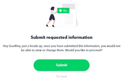 - Once done, you should see the screen below. Please allow our team to review your submitted documents within 1-2 business days. You will receive an email once your Aspire account is ready or if further document/information is required