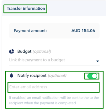1. When placing the payment details, make sure to tick the "Notify recipient" option under the transfer information section
