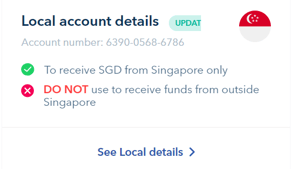 Receive funds locally (receive SGD from an account in Singapore)