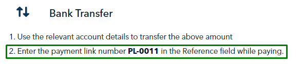 Note! We have also highlighted this on the Payment Link Portal to remind your customers to place the payment link invoice number on their transfer: