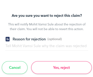 - When rejecting a claim, you can provide a reason in the notes section for the employee to revise or resubmit the claim.