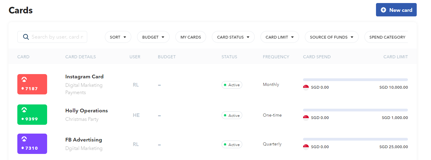 | Source of funds | Choose the Aspire Debit Account (SGD/USD/IDR) to tag your card. Admin users are the only ones who have the ability to select the source of funds for the card. |