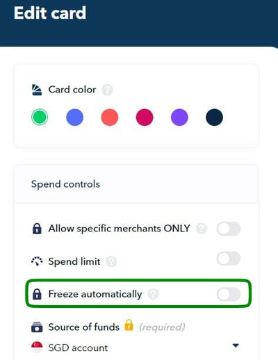 - Set the number of transactions, or select the date you would like this card to freeze on