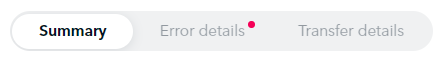 - Transfer yang gagal dapat dilihat pada tab Error Details. Anda dapat melihat baris dan detail kesalahan transfer yang gagal pada tab tersebut. Untuk memperbaiki error, Anda dapat melakukan penyesuaian pada file .csv dan mengunggahnya kembali. Mengubah rincian transfer langsung di Aspire belum tersedia.